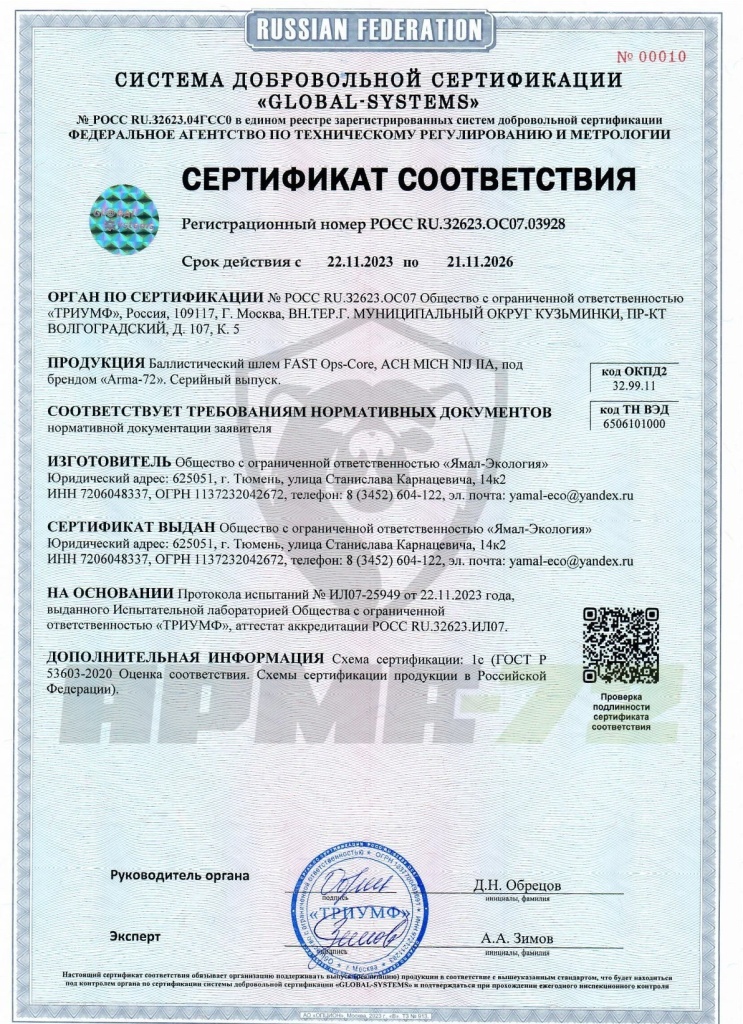 Шлемы баллистические